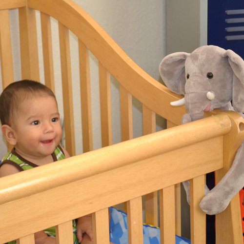 Cute and Cuddly, Curtain Critters Jungle Safari Plush Elephant Toy makes the perfect gift! This elephant will never forget how you gave him a loving home! Much more than just a stuffed animal, children love to take this soft, huggable elephant everywhere they go, on strollers, backpacks, car seats, and even luggage! In quiet times he loves to snuggle, then at bedtime its back on the crib, bedpost or curtain to watch over his new best friend! All Curtain Critters come with an elastic safety loop on the back of the head for easy wall attachment as a curtain tieback and child friendly velcro pads to keep the hands firmly in place wherever they go. Head is approximately 5 inches in diameter and arms are standard curtain tieback length. High quality, machine washable. Curtain Critters received 5 Stars by WTS Toy Review and is rated as a good toy for differently challenged children by AblePlay in the areas of physical, sensory, communicative, and cognitive. Available in sets, collector sets or singles in over 10 different animal designs.